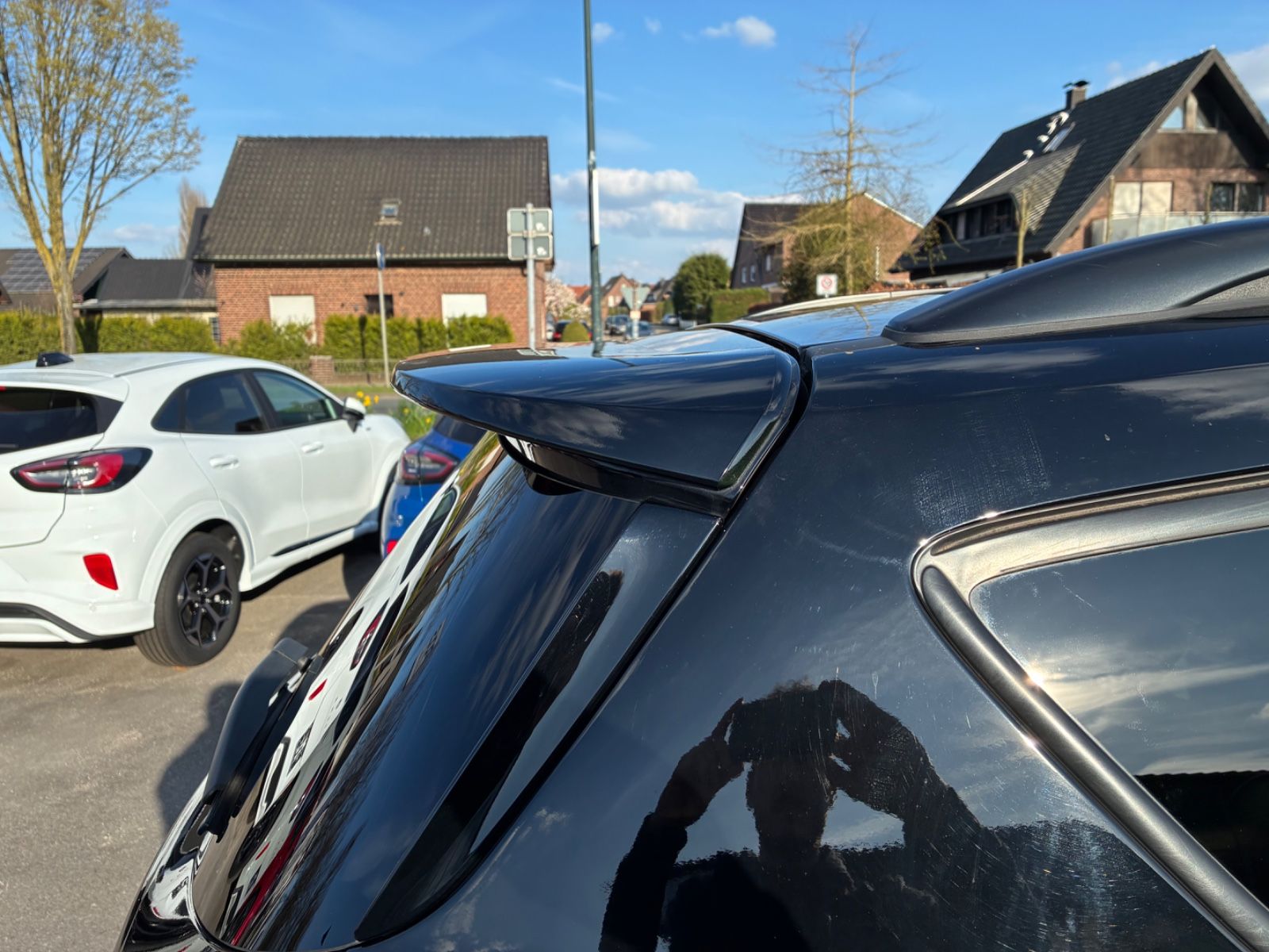 Radhausverkleidungen in Wagenfarbe, großer Dachspoiler, Dachhimmel anthrazit,